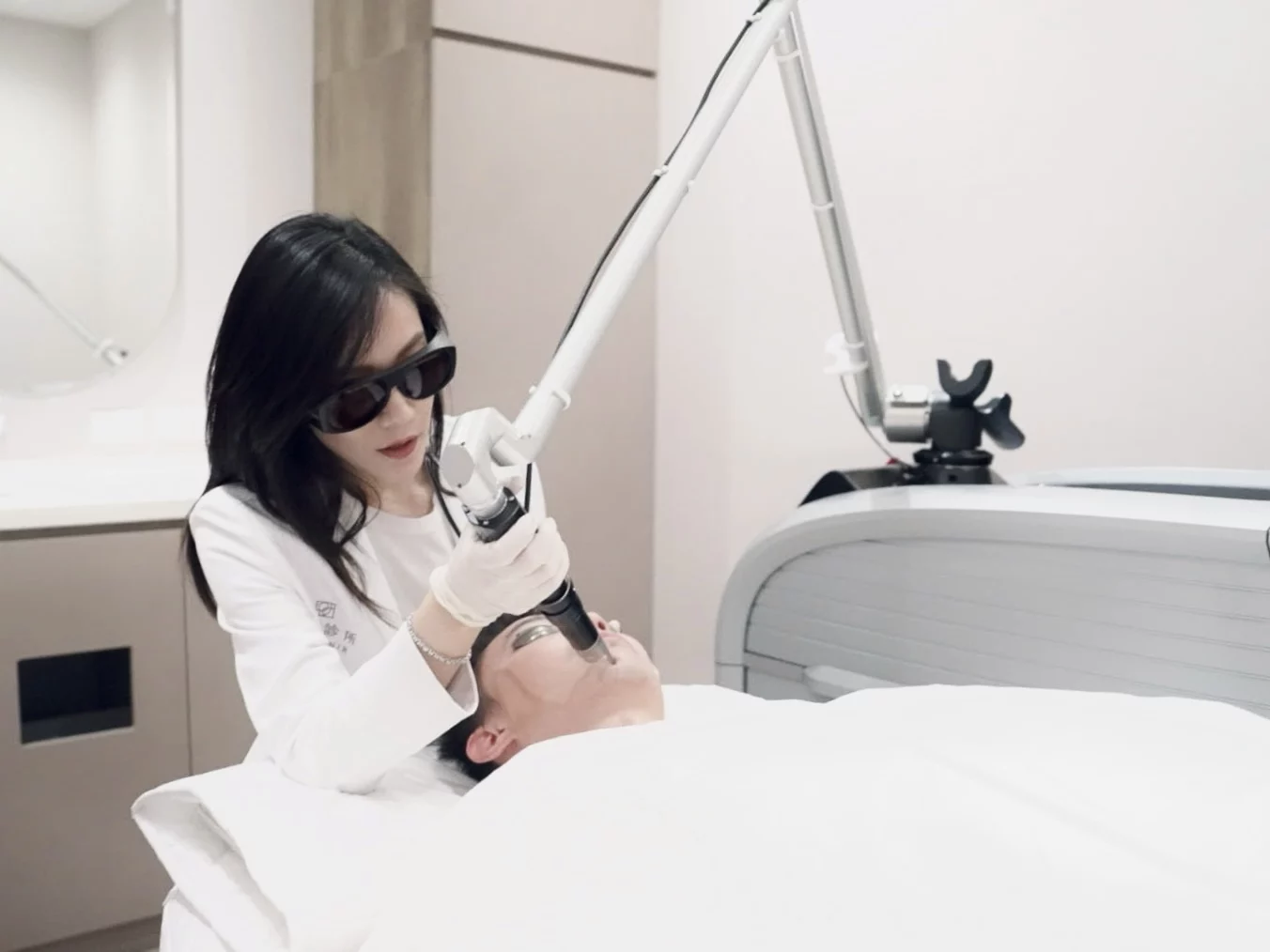 皮秒雷射因將脈衝時間由奈秒縮短成皮秒,從光熱效應時代進展到光震效應,相較傳統雷射較不會感受到疼痛。這是由於皮秒雷射在短脈衝時間內產生強大的光震波擊碎黑色素,超短脈衝能減緩熱效應與組織傷害,雷射後結痂更小、更薄,熱殘留少,副作用較低,恢復期也會比較短。不過在治療開始前,建議由皮膚專科醫師根據客人的狀況評估是否適合治療並給予敷麻。